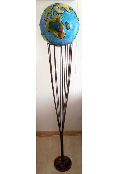 Die Kugel ist im Innern aus Styropor, das mit Modelliermasse (für Innen) ummantelt und dann mit Acrylfarbe bemalt wurde.